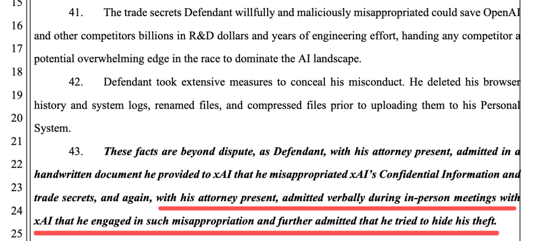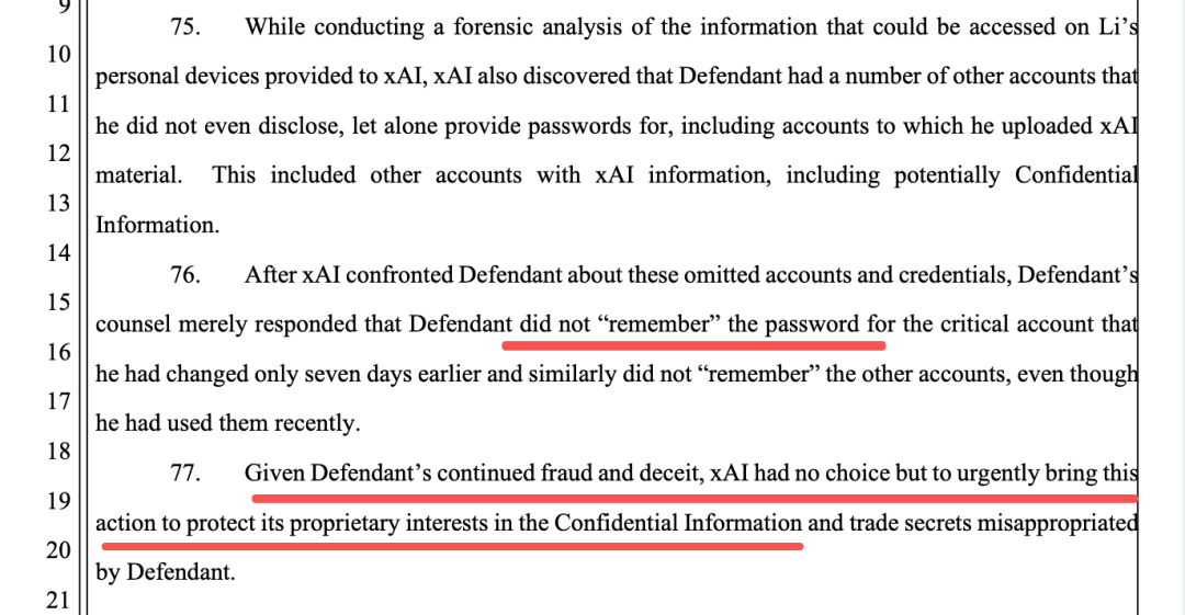 xAI在事后调查发现,Li在离职前夕,将公司大量的机密数据和代码复制到了个人设备上,并试图清除所有操作痕迹。这一发现让xAI迅速将矛头指向了Li,并在内部展开调查。面对铁证如山,Li最终承认了自己的不当行为,但据称他的坦白并不彻底,提供的访问凭证不完整,故意遗漏了关键的个人账户信息。