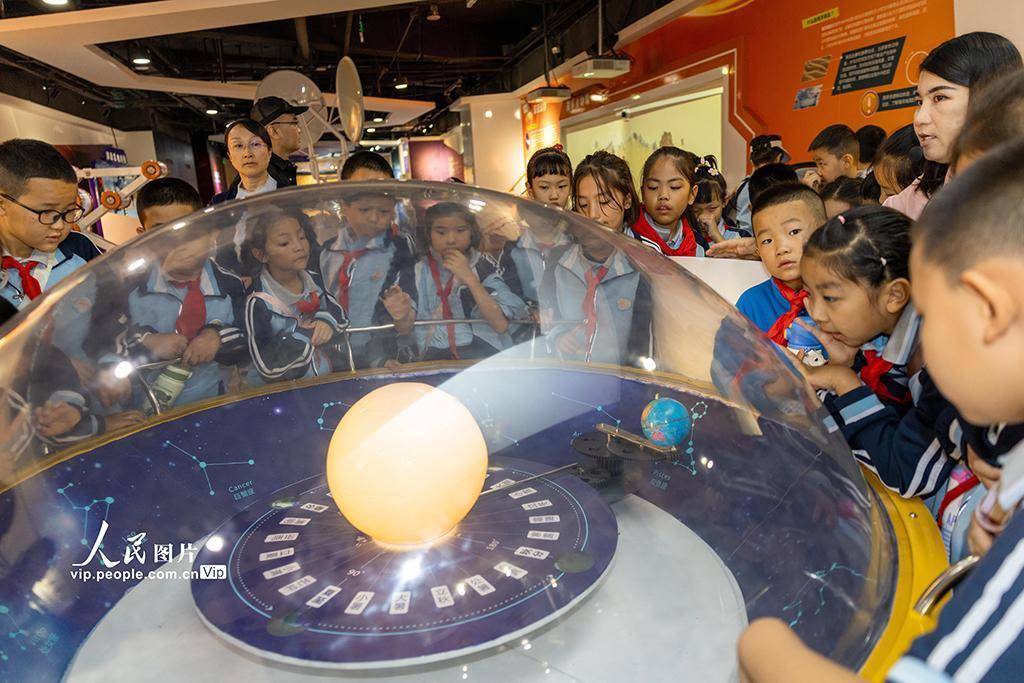 2025年9月5日,新疆乌鲁木齐市第73小学组织学生们来到新疆科技馆参观,体验科普项目,为学生们营造学科学、爱科学、用科学的良好氛围。孙振嵩摄(人民图片网)