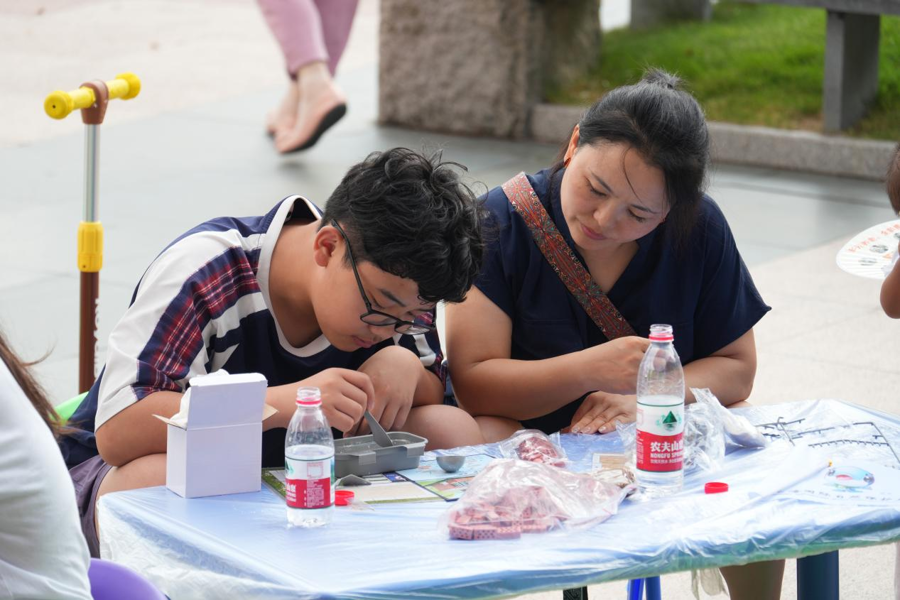 除了别开生面的DIY活动,现场还精心设置了一系列妙趣横生的科普游戏。“绿色科技快问快答”环节,问题涵盖生态保护知识、绿色科技成果等多个领域,参与者们积极抢答,在思维的碰撞中加深对生态知识的理解;“搭桥渡河”游戏考验团队协作能力,亲子们携手搭建桥梁,在实践中体会人与自然相互依存的关系;“垃圾分类趣闯关”以寓教于乐的方式,让大家轻松掌握垃圾分类的要点。在欢声笑语中,参与者们深刻领悟到“人与自然和谐共生”是中华文明传承千年的生态智慧结晶,而“践行绿色低碳”更是实现可持续发展的必由之路。